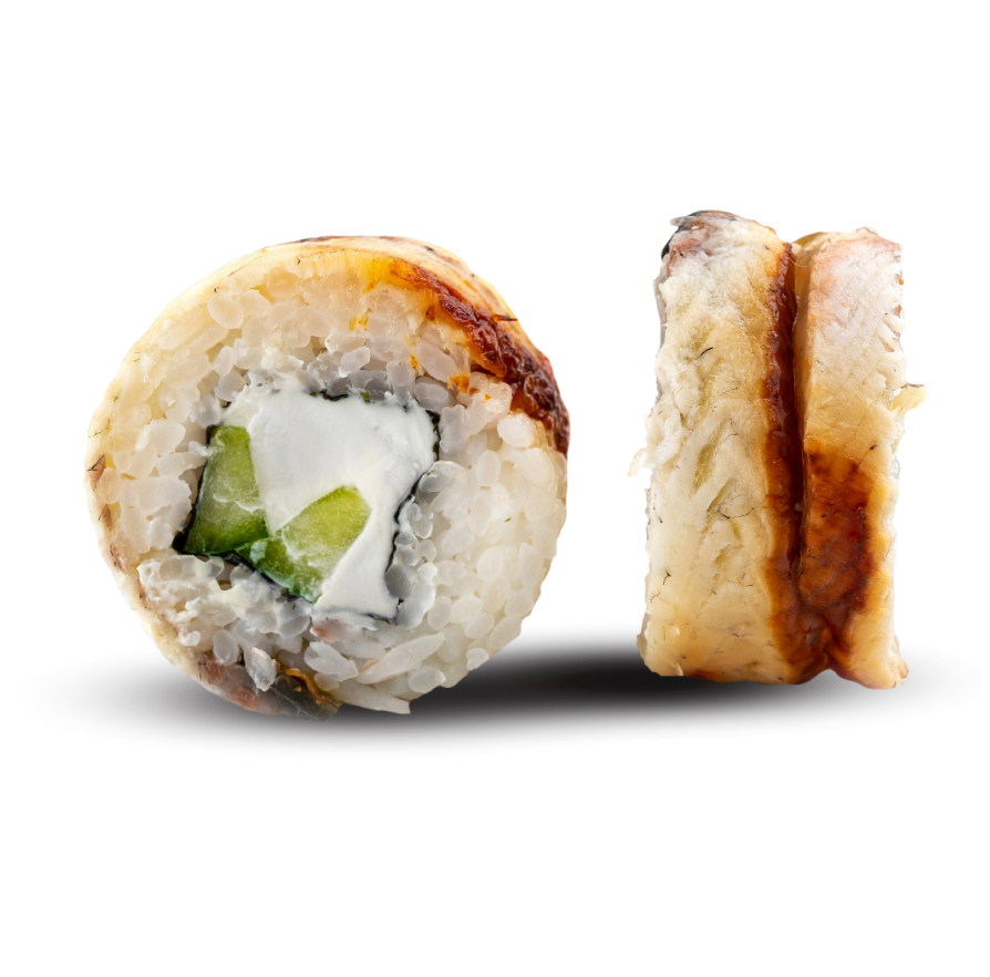 Острый ролл со сливочным сыром, угрем, соусом спайси.