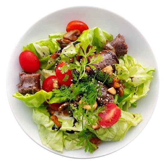 Тёплый салат с говядиной и помидорами в майонезе со сливками